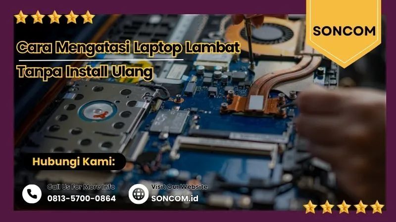 Jika laptop tetap lambat meskipun sudah mencoba berbagai cara, saatnya berkonsultasi dengan teknisi berpengalaman. Untuk Anda yang membutuhkan jasa service laptop Sidoarjo, Soncom bisa menjadi pilihan terbaik untuk memperbaiki performa laptop dengan cepat dan profesional.